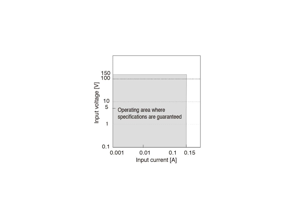 *1 Mindestspannung, bei der der Strom zur PLZ-U zu fließen beginnt. (Die PLZ-U erkennt kein Signal bei einer Eingangsspannung von kleiner oder gleich 0,3 V und einem Eingangsstrom von kleiner oder gleich 1 % des Bereichnennwerts. Wenn also die Eingangsspannung allmählich von 0 V erhöht wird, fließt kein Strom, bis 0,3 V überschritten wird. Wenn ein Strom von mehr als oder gleich 1 % des Bereichnennwerts zu fließen beginnt, kann der Strom bei Spannungen von weniger als 0,3 V fließen.)